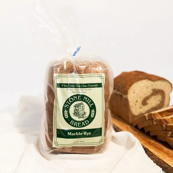 Light and dark rye dough swirled together and baked with caraway seeds.